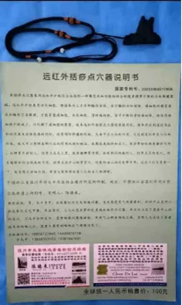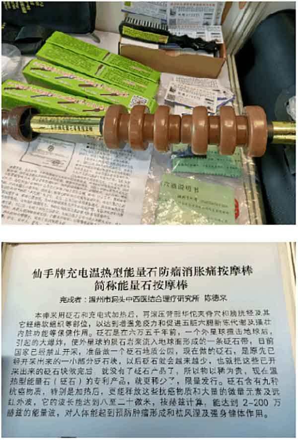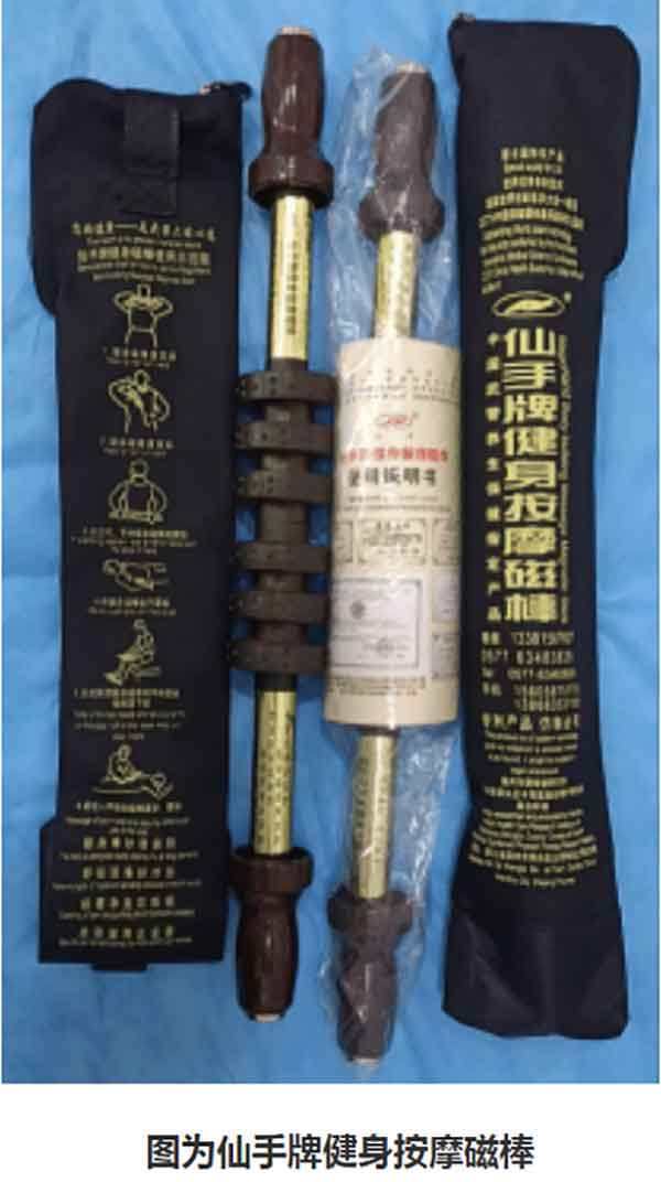 他根据我国传统医学的经络学说和其中西医结合理疗研究所20多年的临床经验及日本国际预防医学研究所发明的《骨盆压操涌命无病法》并参考有关防癌的科研资料研发出“仙手牌健身按摩磁棒”,该发明是以人体背、腰凹凸的自然生理结构和华陀夹穴,膀胱经的位置而设计的,棒体内装有多个特制永磁和特定磁场的医疗磁铁结合棒体的凸起轮状体而综合性刺激了华佗夹脊穴和足太阳膀胱经等经络及周围的组织由于各经络穴位和血管及神经、肌肉等组织受健身棒间断性的推动和磁场等物理性的作用能起到消炎、消肿、降压、降血脂、止泻和舒筋活络、宣通气血、祛瘀止痛、促进吸收、缓解粘连、提神健脑、解除疲劳、调节机体免疫功能等疗效,从而改善血液循环,增强体质,延缓衰老。